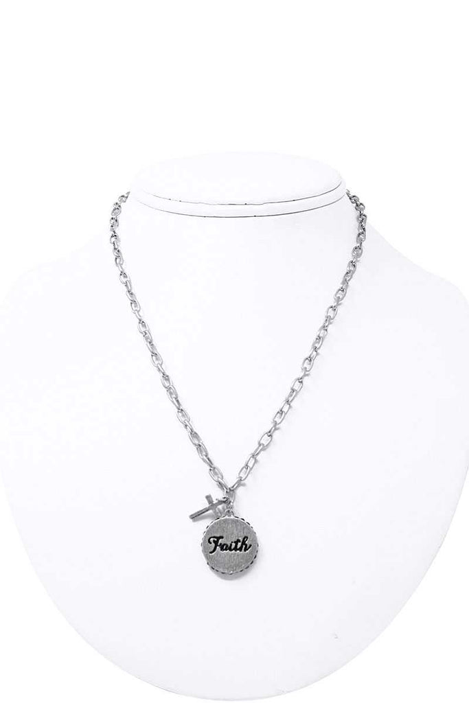 FASHION SIDE RHINESTONE CIRCLE FAITH PENDANT AND CROSS NECKLACE