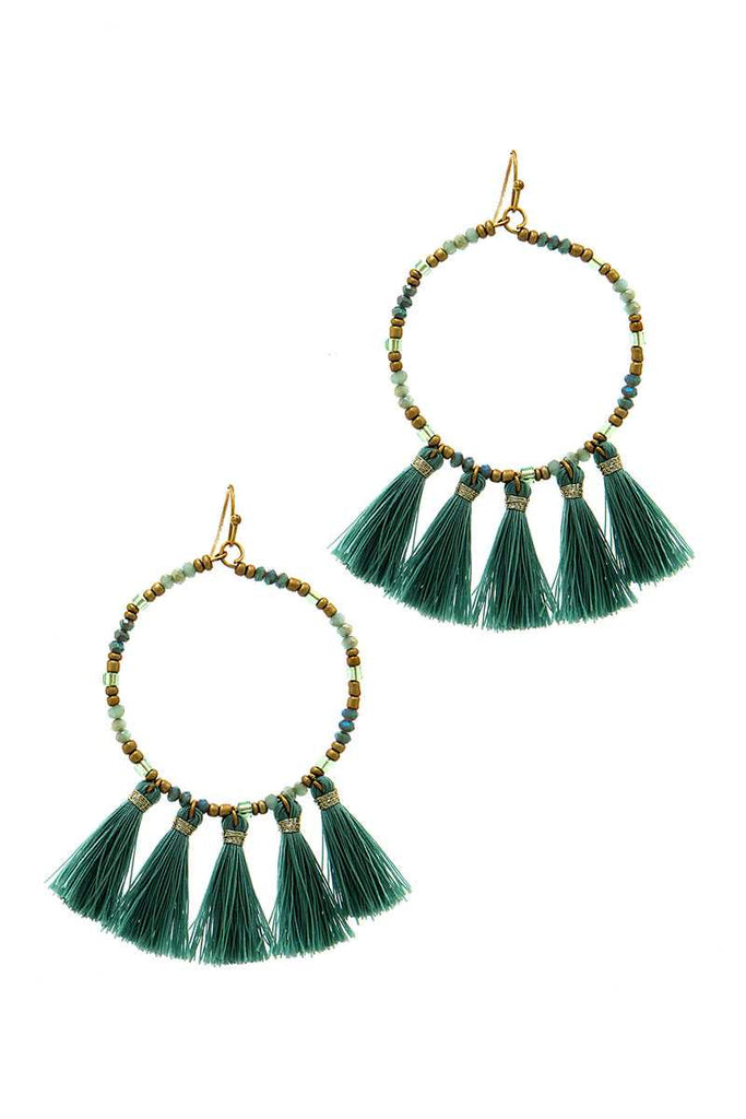 DESIGNER CHIC MULTI TASSEL HOOP EARRING