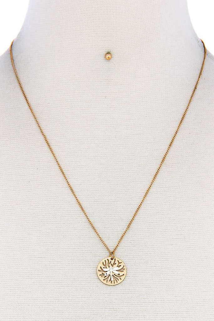 Modern Stylish Brass Dragonfly Pendant Necklace And Earring Set