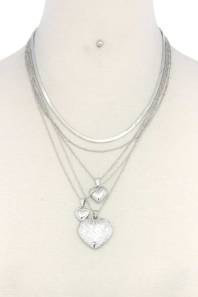 Heart Charm Layered Metal Necklace