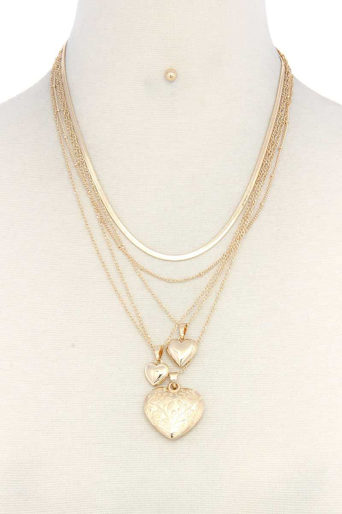 HEART CHARM LAYERED METAL NECKLACE