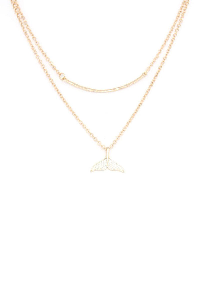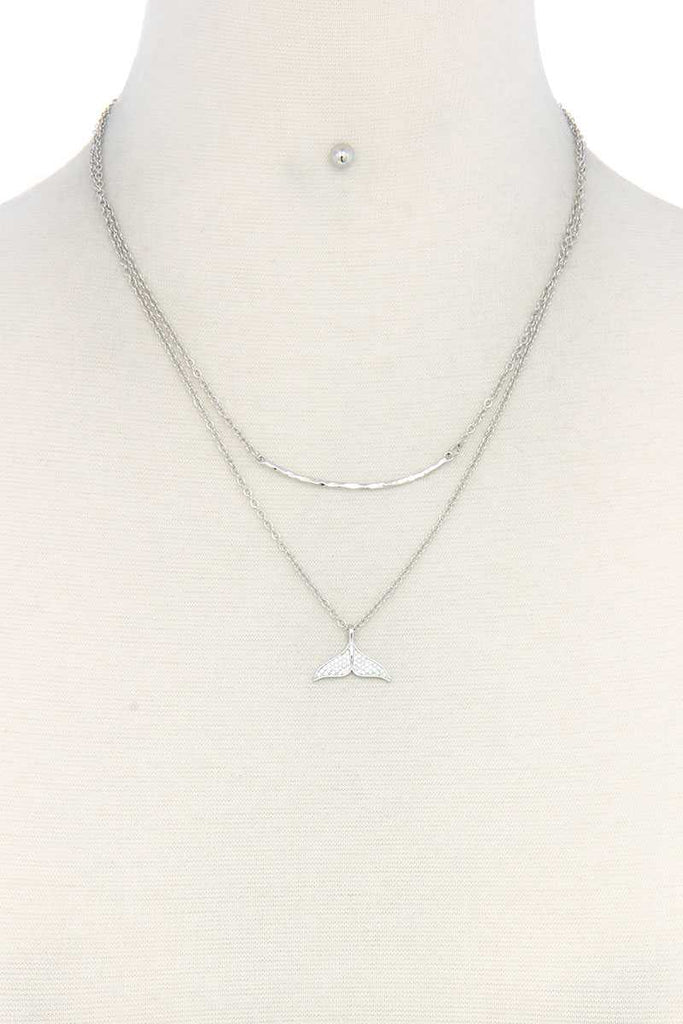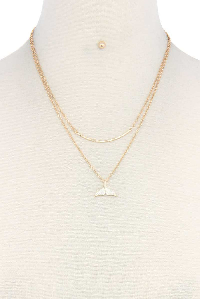 RHINESTONE MERMAID TASSEL CHARM LAYERED NECKLACE