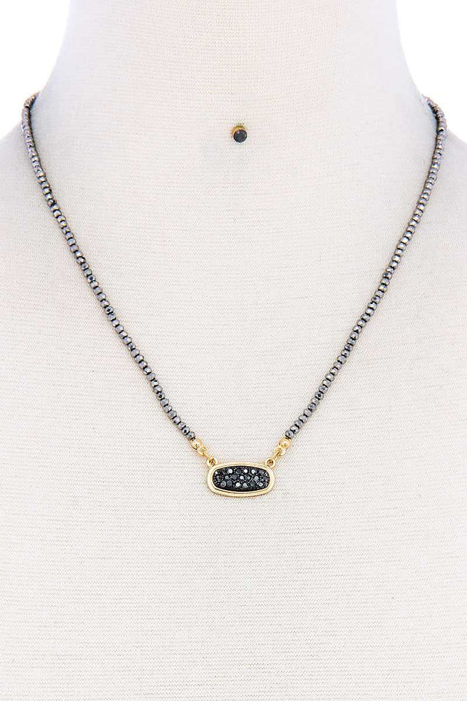 Fashion Beaded Oval Pendant Necklace And Earring Set