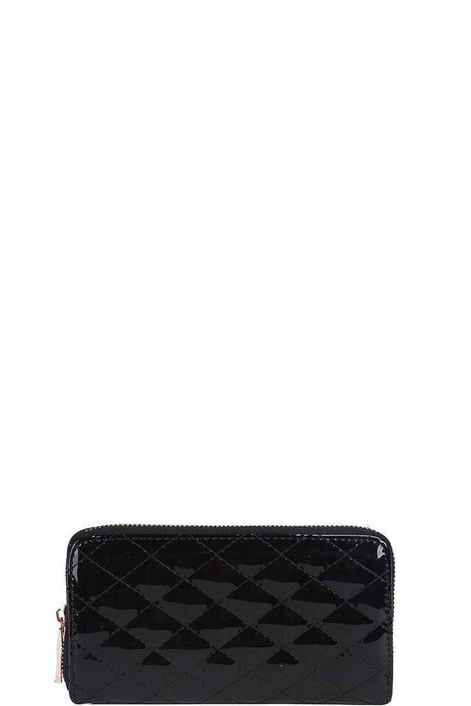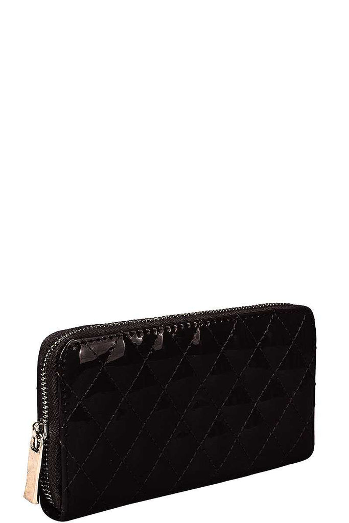Fashion Glossy Stitched Long Wallet With Hand Strap
