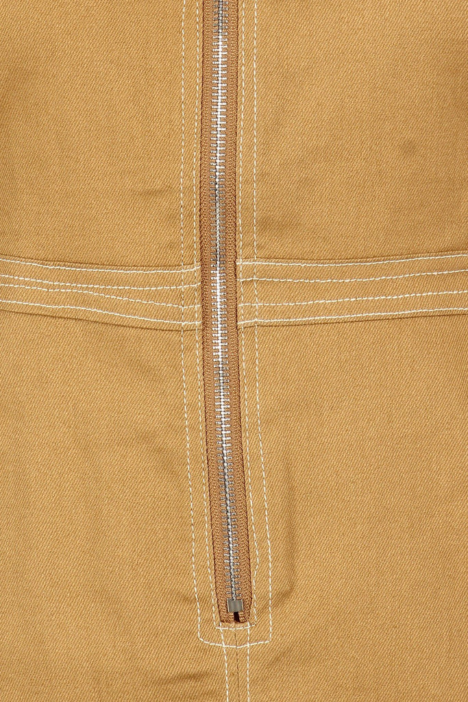 Plus solid bodycon mini dress, sleeveless with a V-neck, half-zip closure, and an O-ring zipper pull