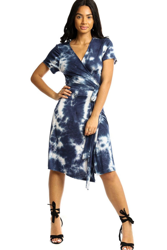 Wrapped style midi dress in a relaxed fit with side waist tie and short sleeves.