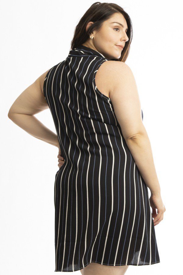 A comfortable classic, sleeveless mini dress featuring an ascot tie neck finish. Made with a breathable, durable polyester fabric.