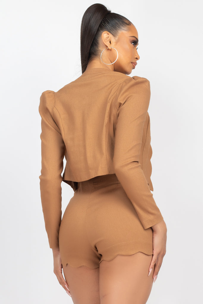 Scallop Hem Blazer Jacket & Mini Shorts Set