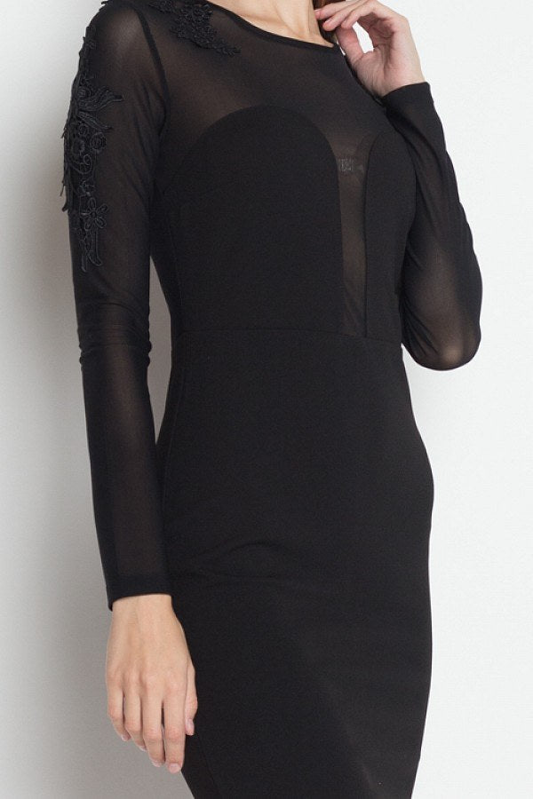 Long Sleeve Floral Mesh Dress