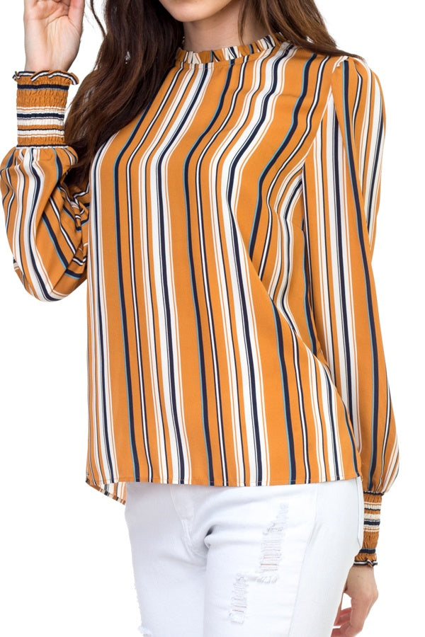 A woven shirt, featuring an allover multi-color stripe pattern design, long