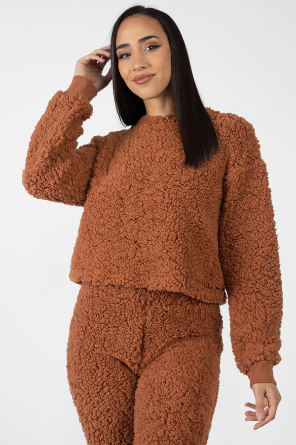 Faux Fur Cropped Top & Elasticized Pants