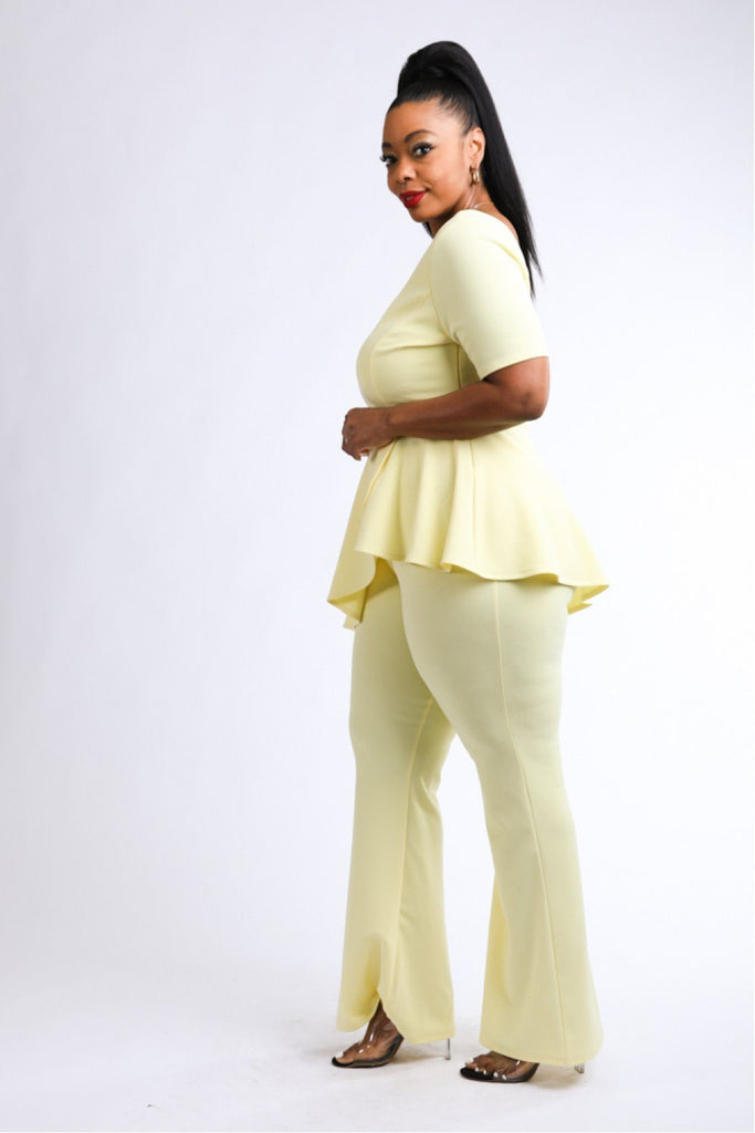 Asymmetrical peplum short sleeve top & Wide leg pants set