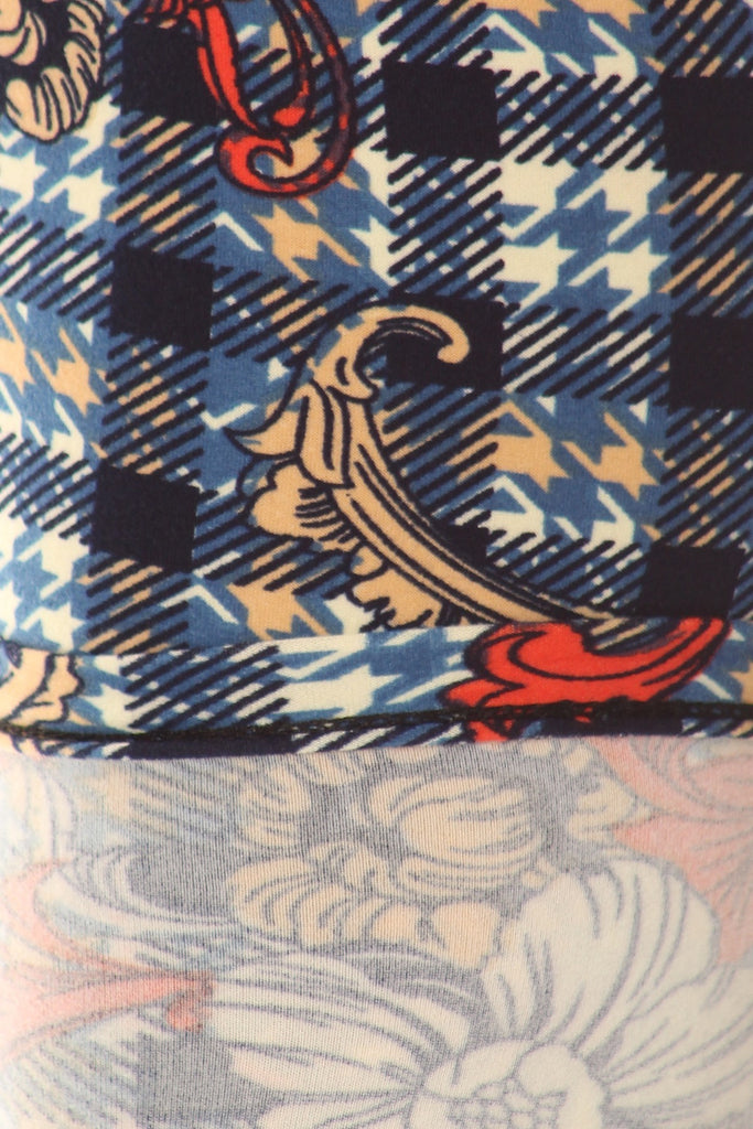 Plaid with floral print overlay knit legging with elastic waistband, and high waist fit