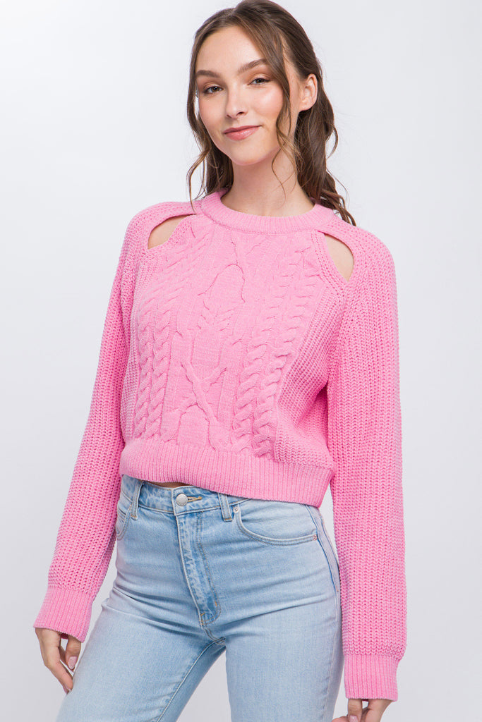 Add the Knit Pullover Sweater with Cold Shoulder Detail in Pink to your cart now and embrace the perfect combination of fashion-forward style and cozy comfort!