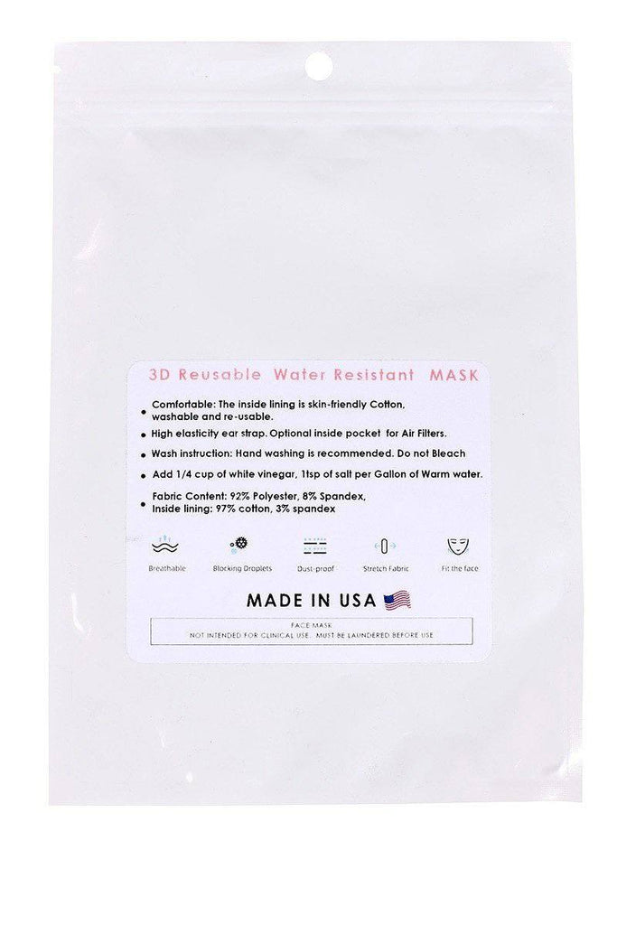 MADE IN USA 3D REUSABLE WATER RESISTANT FACE MASK