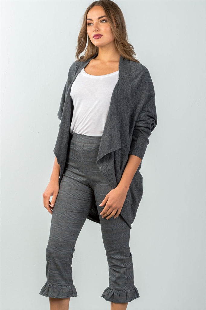 Ladies fashion all over pin stripes ruffle hem high waist culottes pants