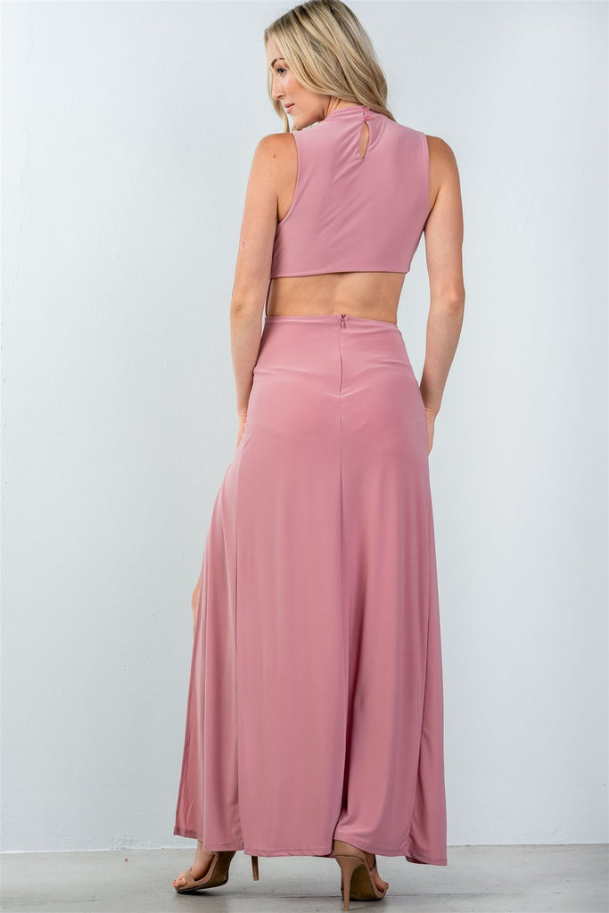 Ladies fashion cut out double thigh high slit maxi dress