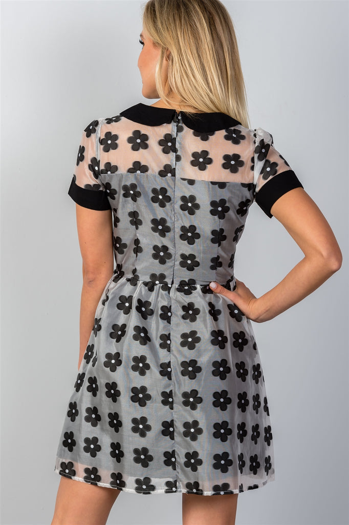 Ladies fashion daisy print baby doll peter pan collar mini dress