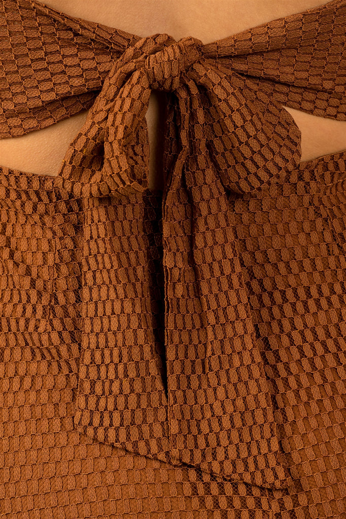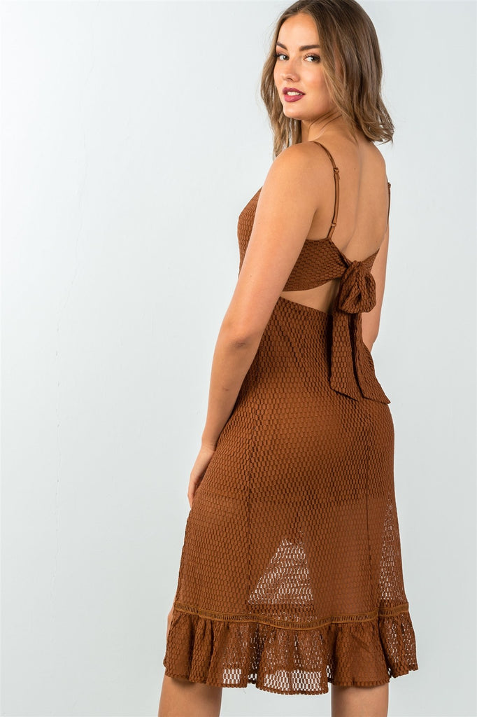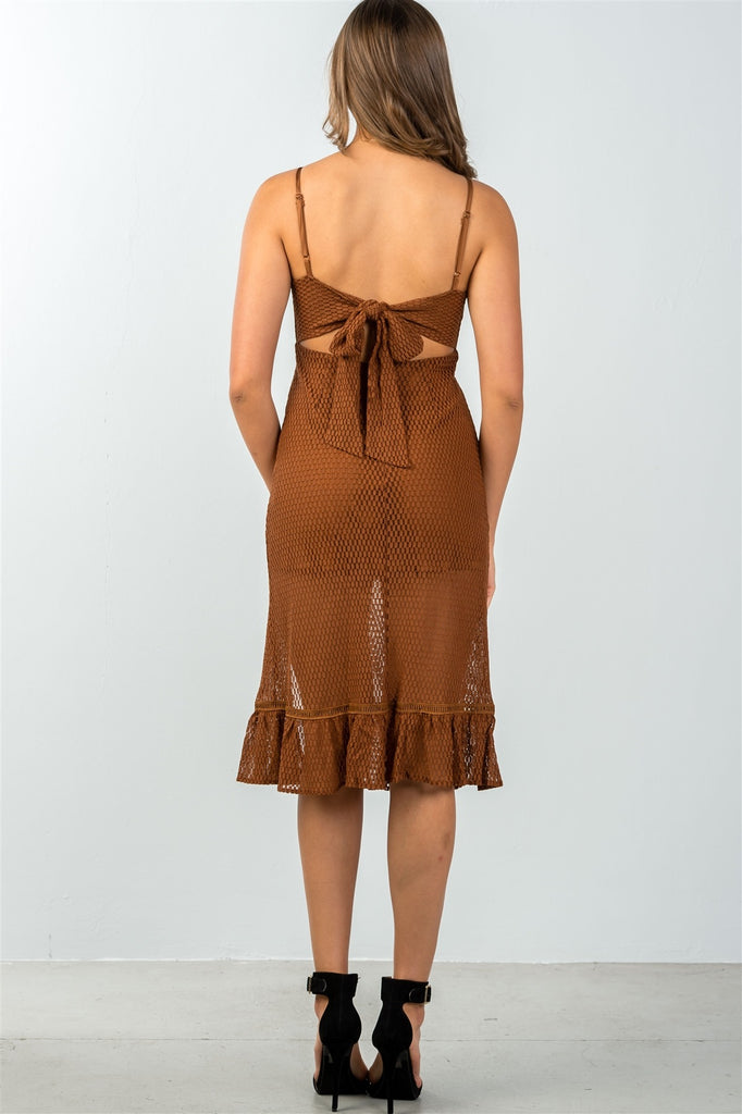 Ladies fashion ruffle hem sheer mesh crochet leg-slit midi dress