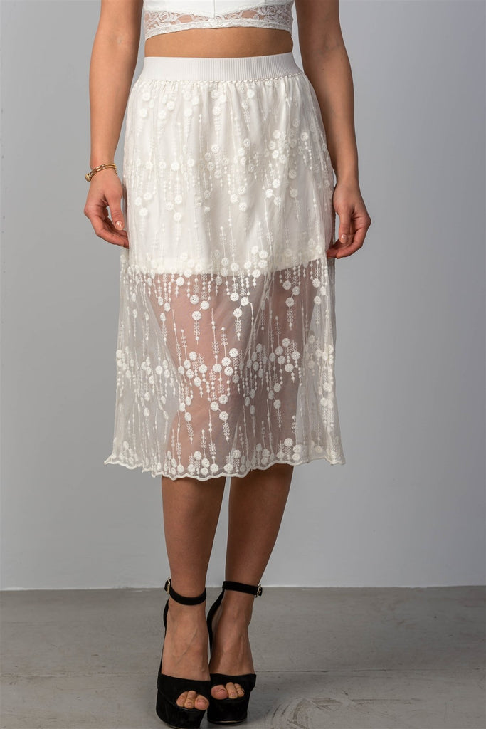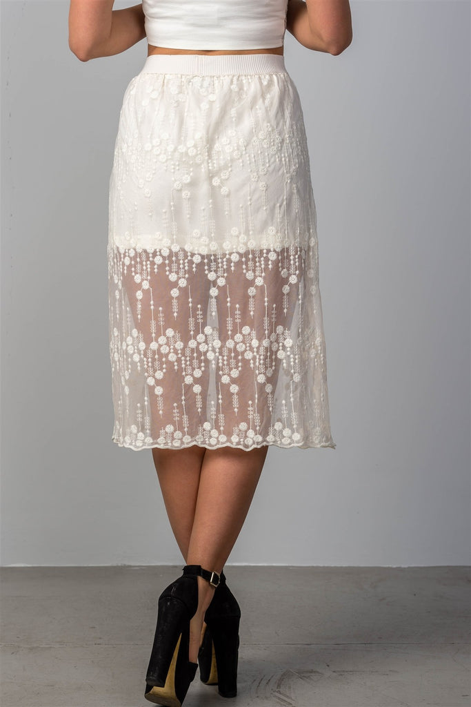 Imported S.M.L100% Nylon Ladies fashion boho elastic waist lined lace midi skirt