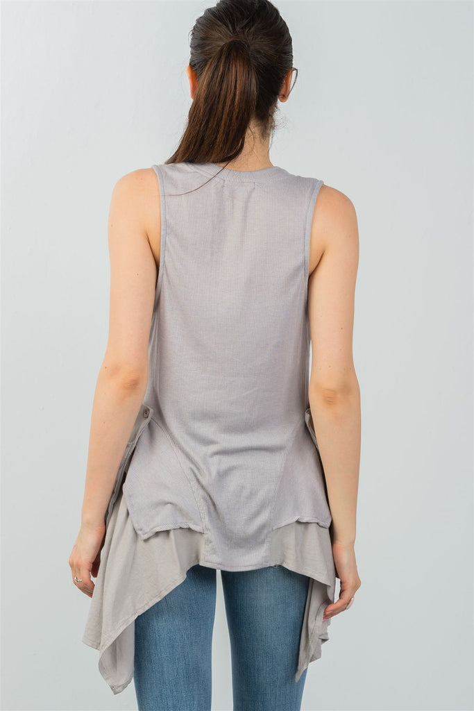 Ladies fashion front button down closure solid color sleeveless asymmetric hem vest