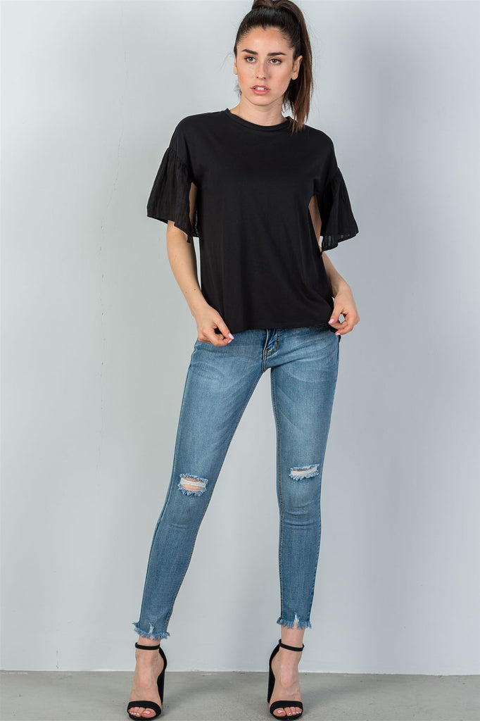 Ladies fashion black split short sleeve top