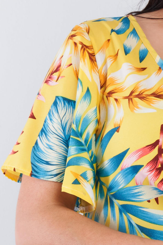 Plus Size Multi Tropical Floral Front Roll Butterfly Sleeve Top