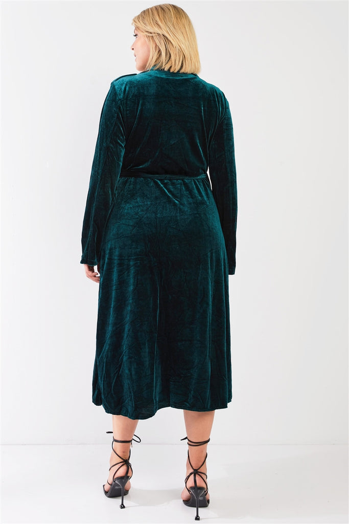 Plus Hunter Green Velvet Long Sleeve Maxi Smoking Jacket