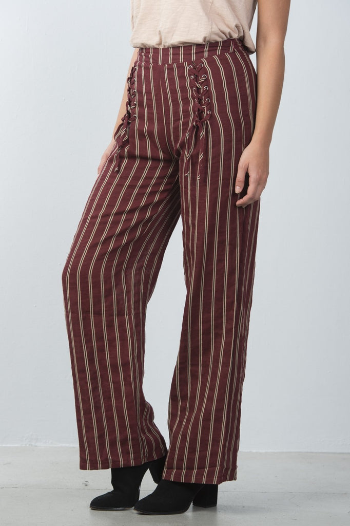 Ladies fashion high waisted stripe lace-up wide-leg pants