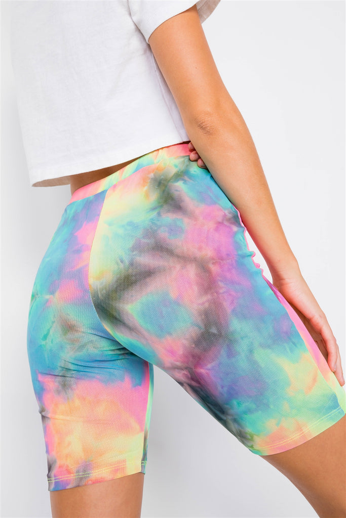 Neon Multi Tie Dye Mesh Sheer High-waist Biker Shorts