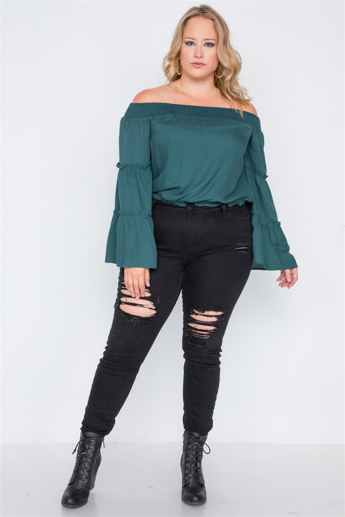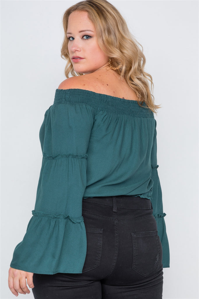 Plus Size Off-the-shoulders Bell Sleeve Top