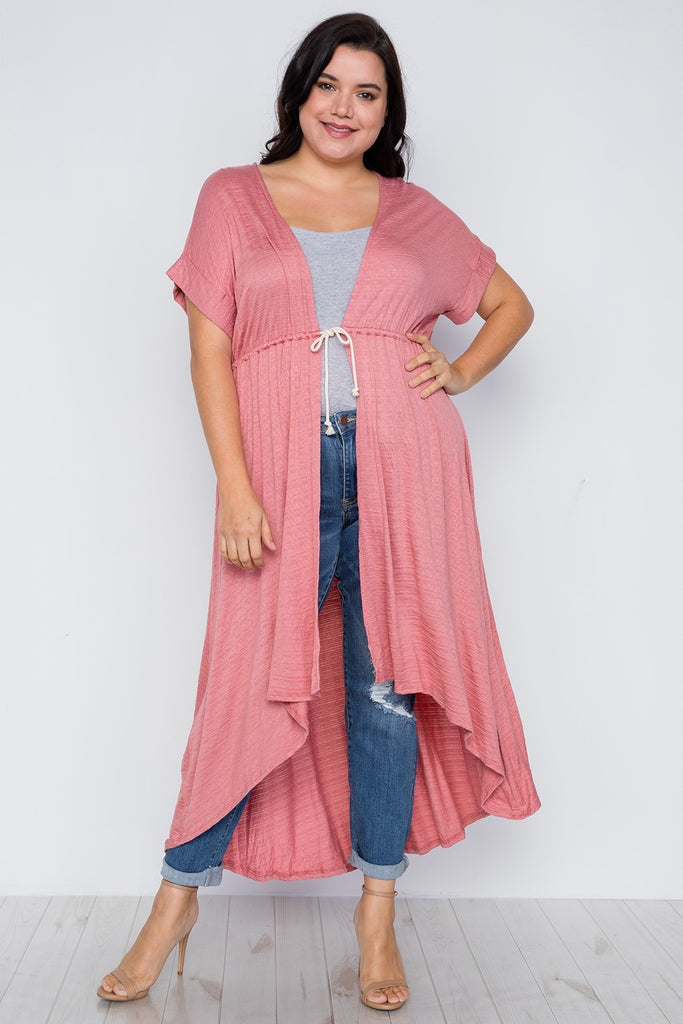 batwing sleeveless, self tie waist, solid, high low hem, cuffed short sleeves, unlined