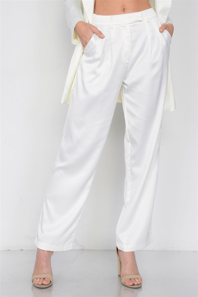 Ivory Silk Boyfriend Blazer & Chic High-waist Pleated Ankle Pant Set