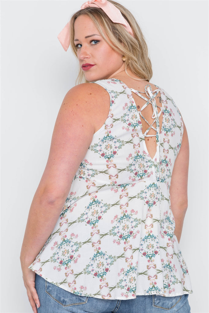 deep V-Neckline, sleeveless,floral print allover, lace up string at back, unlined