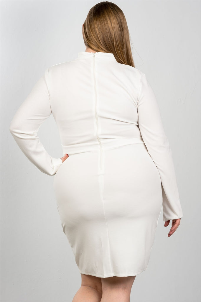Ladies fashion plus size sexy high neck mesh insert bodycon midi plus size dress