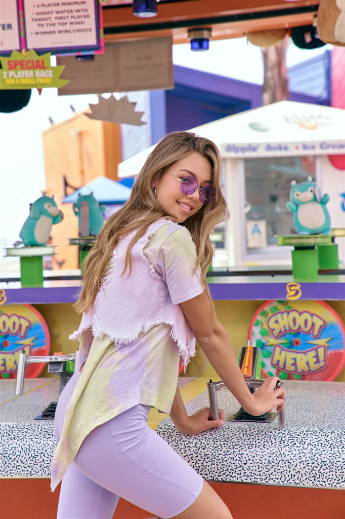 Lavender Purple Raw Denim Shark Bite Hem Crop Jean Vest
