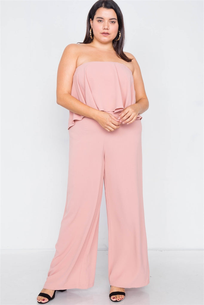 Plus Size Off-the-shoulder Flounce Wide Leg Jumpsuit