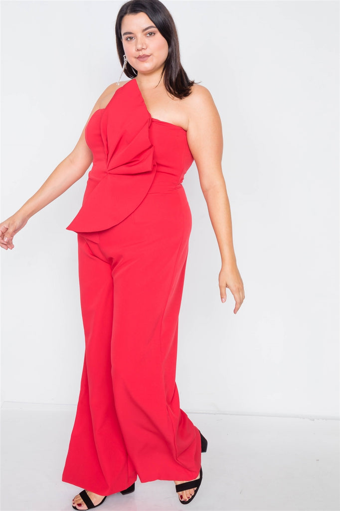 Plus Size Tailored Frill Wide Leg Sleeveless Cocktail Jumpsuit