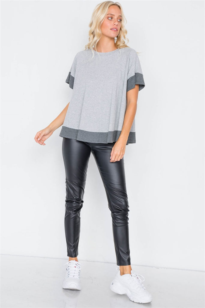 contrast hem and sleeves, round neck, short sleeves, flare hem, cotton tee, very stretchy, unlined.