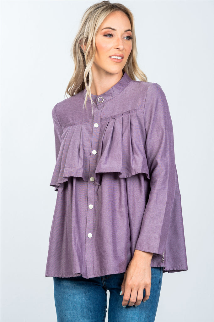 Layer pleated button down top