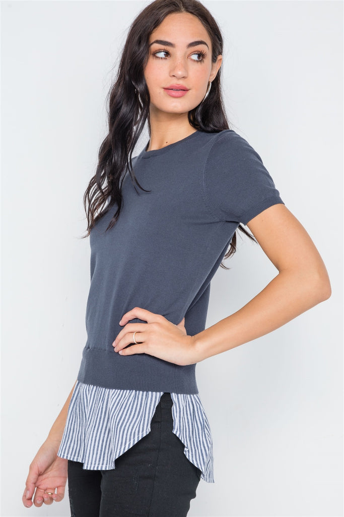Short Sleeve Combo Stripe Sweater