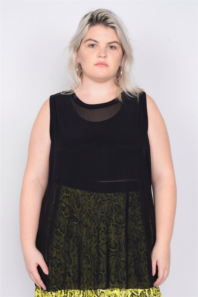 Plus Size Black Mesh Sleeveless Long Tank Top