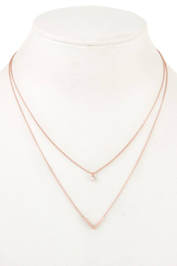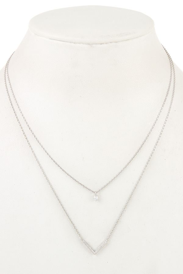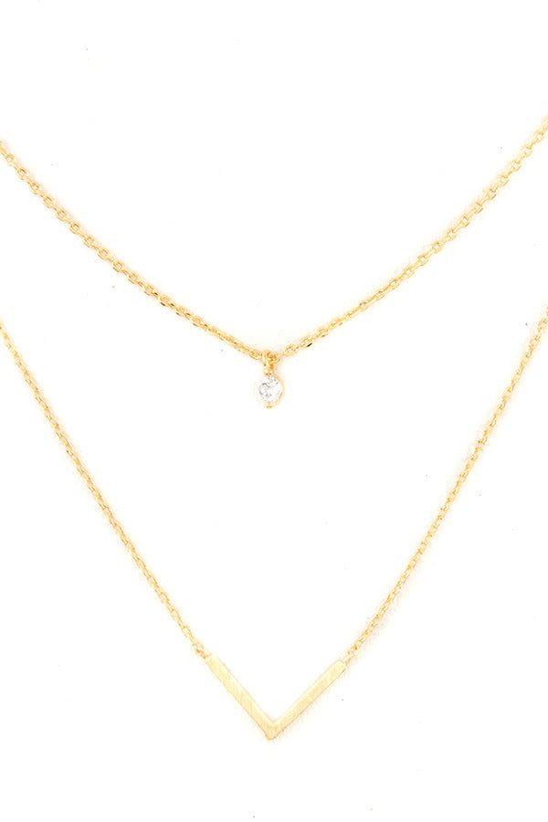 - CZ Stone V Pendant Layered Necklace