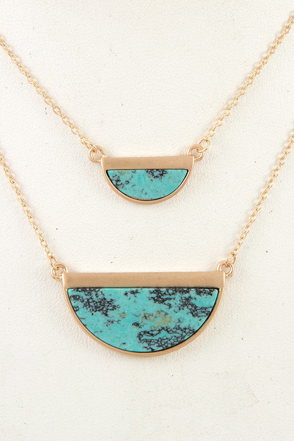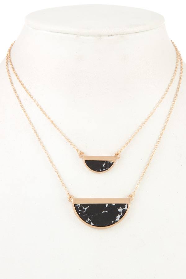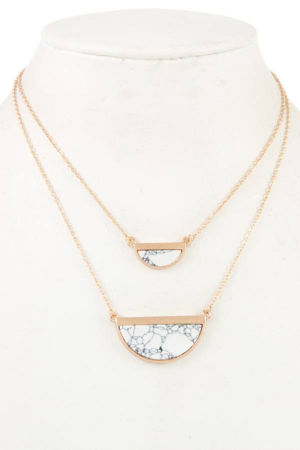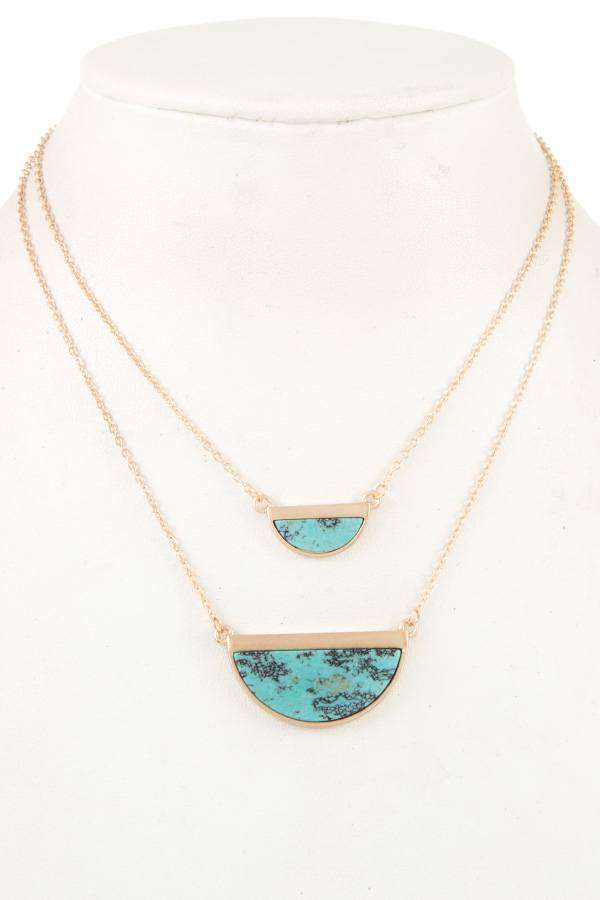 HALF FRAMED GEMSTONE DOUBLE ROW NECKLACE