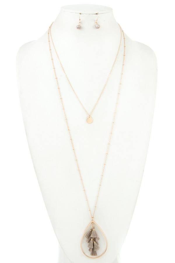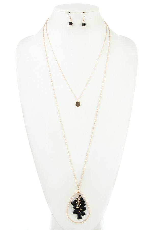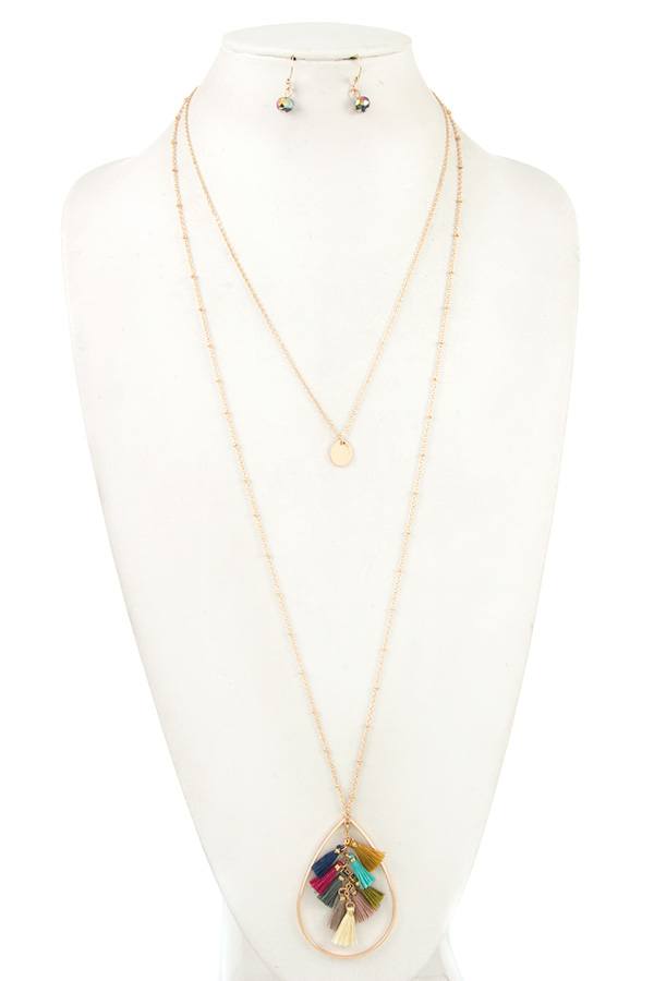 DOUBLE ROW MULTI TASSEL TEARDROP PENDANT NECKLACE SET