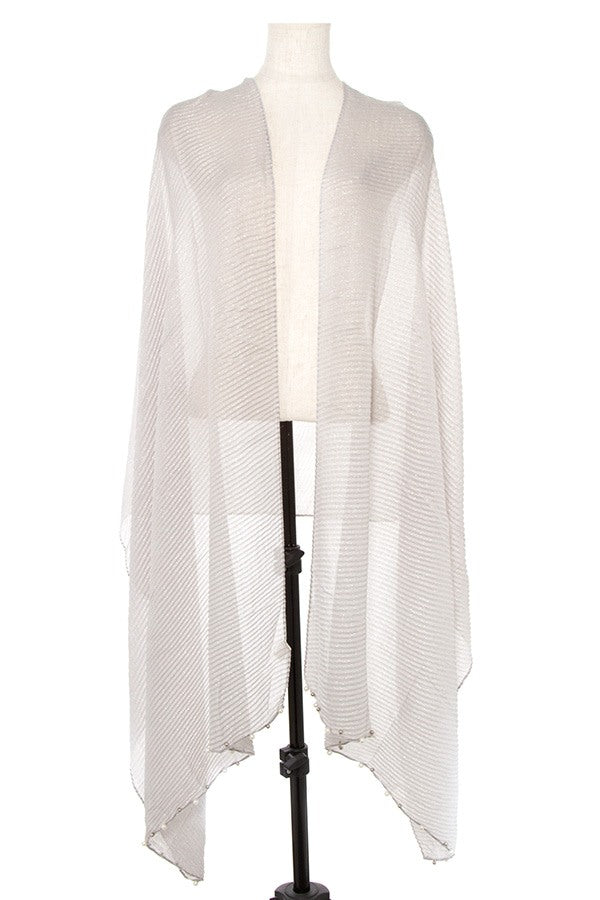 Pleated pearl and bead accent oblong scarf