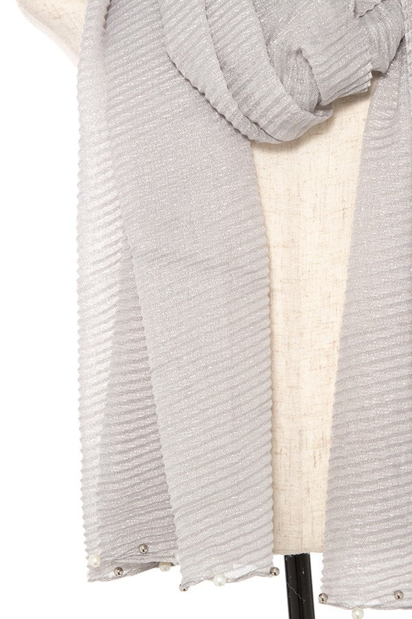 PLEATED PEARL AND BEAD ACCENT OBLONG SCARF