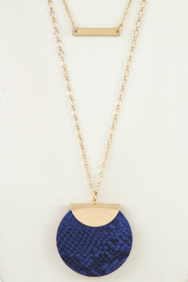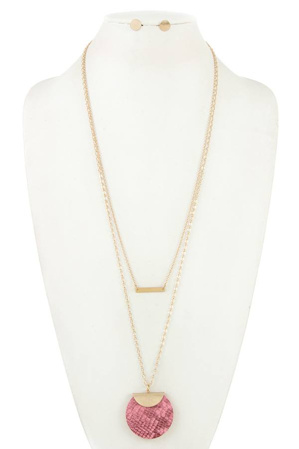 REPTILE PRINT AND BAR PENDANT LONG NECKLACE SET