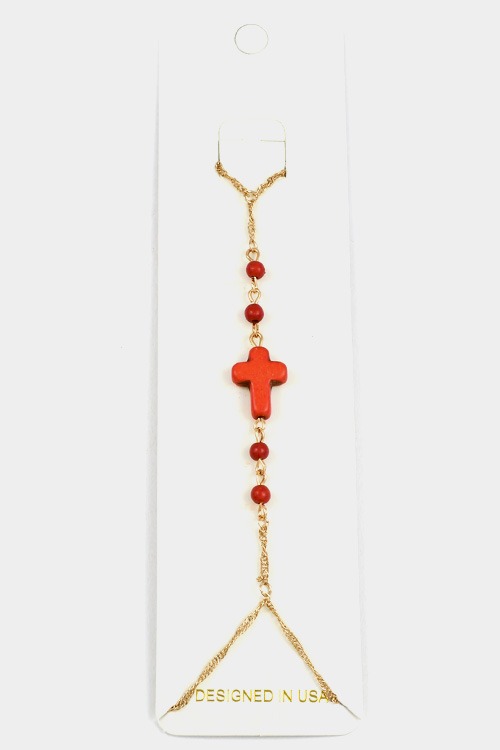 Imported - gem stone cross hand chain - gold/turquoise.gold/ivory.gold/coral.rhodium/turquoise